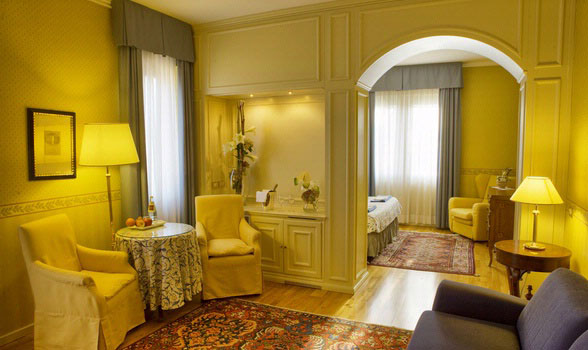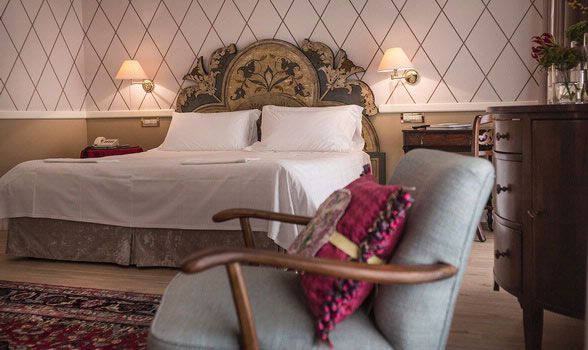 Elegantní vila v liberty stylu z počátku 20. století a čtyři s ní spojené rafinované klasické budovy nabízí 59 pokojů vybavených veškerým komfortem, každý z nich má vlastní sociální zařízení, každý pokoj je jedinečný, vyniká starožitným nábytkem, vytříbenými látkami a designovými detaily